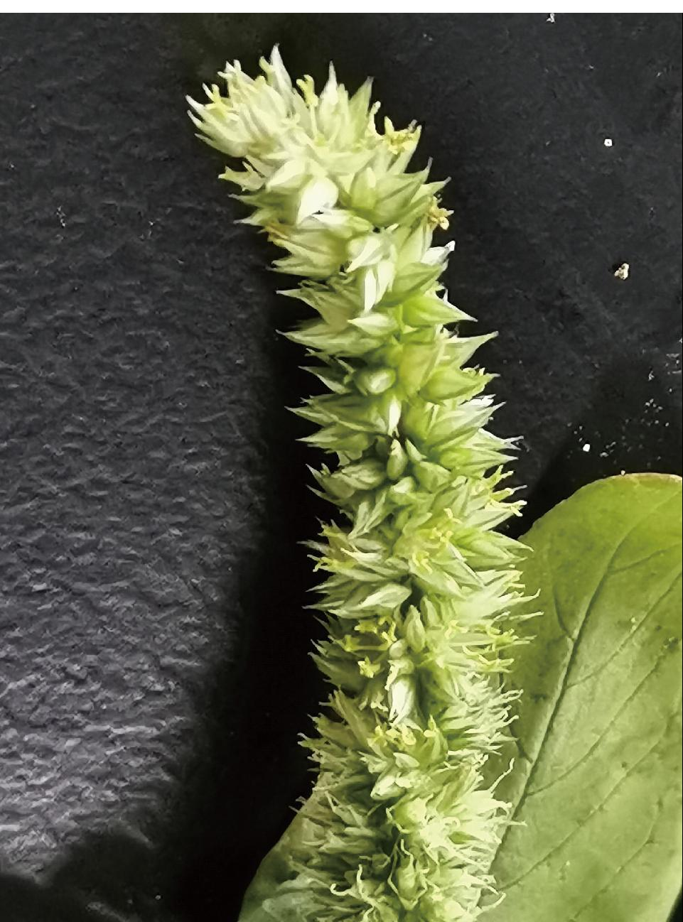 花:花序顶生或腋生,雄花位于穗状花序顶端1/4~2/3处。腋生团簇状花序多为雌花或与雄花混生。苞片在腋生花簇及顶生花穗基部变成2枚尖锐的直刺,雌花花被片5枚,膜质,倒卵状披针形或匙状披针形,等长或近等长,雄蕊5枚。